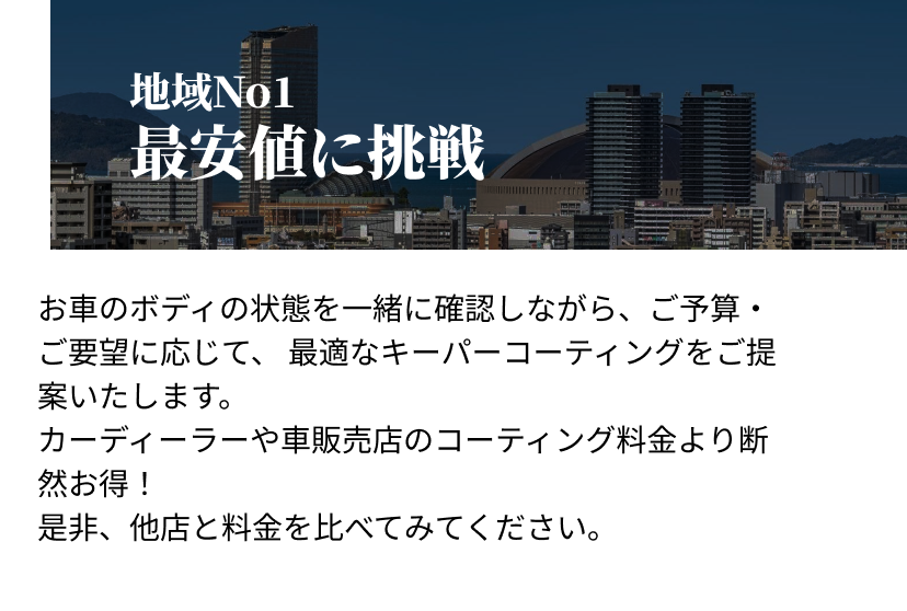 - コーティングは、車の納車直後に行うのが最適です。キーパーコーティングは非常に微細な分子で表面を覆います。新しい塗装の場合でも、通気性が高いため、乾燥中に発生するガスがコーティング後も問題なく放出されます。キーパーコーティングは、他のガラスコーティングによく含まれるキシレンなどの有機溶剤を使用しておらず、塗装にダメージを与えることがないので安心してお任せください。